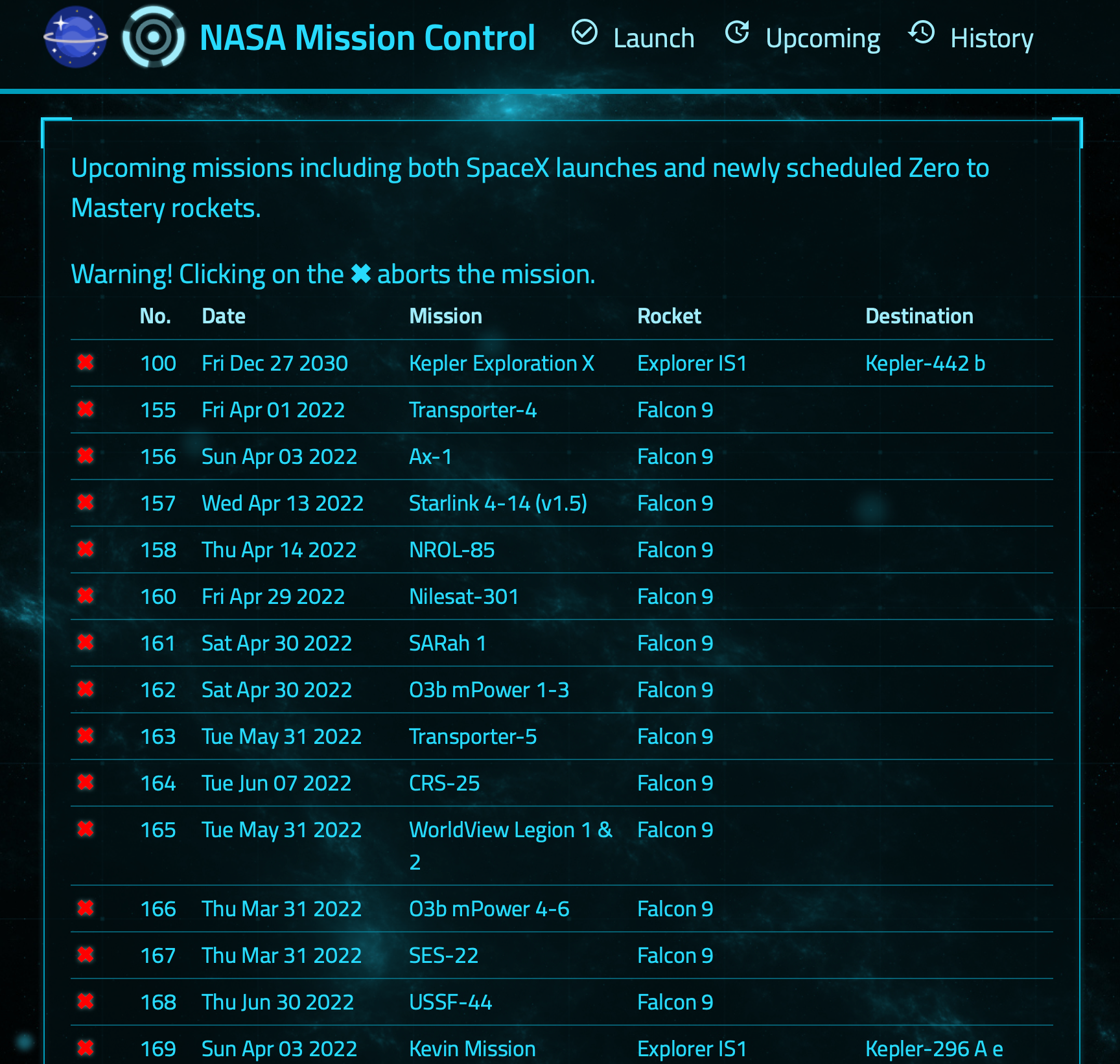 Node Nasa itself is a CRUD application focused on backend design strategies such as models and controllers, and connects to the NASA open API to get existing launch missions or create or delete new (fictional) missions. It is connected to a MongoDB for saving new launches.